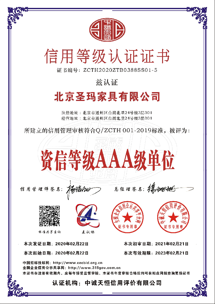 北京圣瑪家具有限公司是以設(shè)計研發(fā)、生產(chǎn)、銷售、服務(wù)為一體的專業(yè)化辦公家具制 造企業(yè);主要經(jīng)營辦公家具、校園家具、實驗室家具、酒店套房、全屋定制類等家具。 公司成立于 2017 年,生產(chǎn)基地位于天津市蘆臺經(jīng)濟開發(fā)區(qū)華澳盛世家具有限公司院 內(nèi),占地面積約 10000 平米,擁有員工 100 人左右,其中高級技術(shù)人員達 15%以上。 公司采用了南興、先達系列等先進生產(chǎn)設(shè)備,建立專業(yè)流水線,具備先進的生產(chǎn)及加 工能力。公司設(shè)有專業(yè)的產(chǎn)品設(shè)計部、運營部、質(zhì)檢部等,提供專業(yè)的 CAD 平面圖、立面 圖級效果設(shè)計圖紙。 使用優(yōu)質(zhì)的進口原材料及配件;嚴(yán)把進貨渠道,所用材料符合國家環(huán)保標(biāo)準(zhǔn)要求。款 式上依據(jù)人體工程學(xué)原理,追求多樣化的設(shè)計風(fēng)格。按照 “ISO900/ISO14001 族標(biāo)準(zhǔn)” 的 要求,嚴(yán)格控制每一個環(huán)節(jié)。 并本著“以質(zhì)量求發(fā)展,向管理要效益,顧客滿意為焦點,持續(xù)改進,共筑偉業(yè)”的 宗旨方